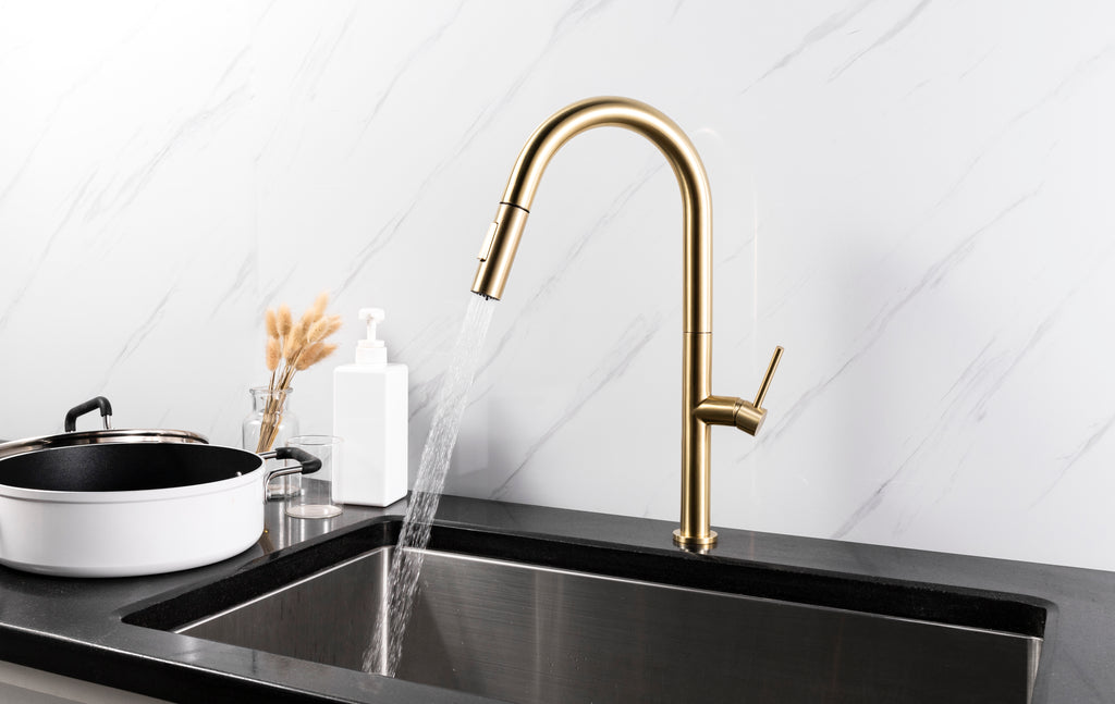 Stylish Brush Gold Kitchen Faucet with Pull Out Sprayer