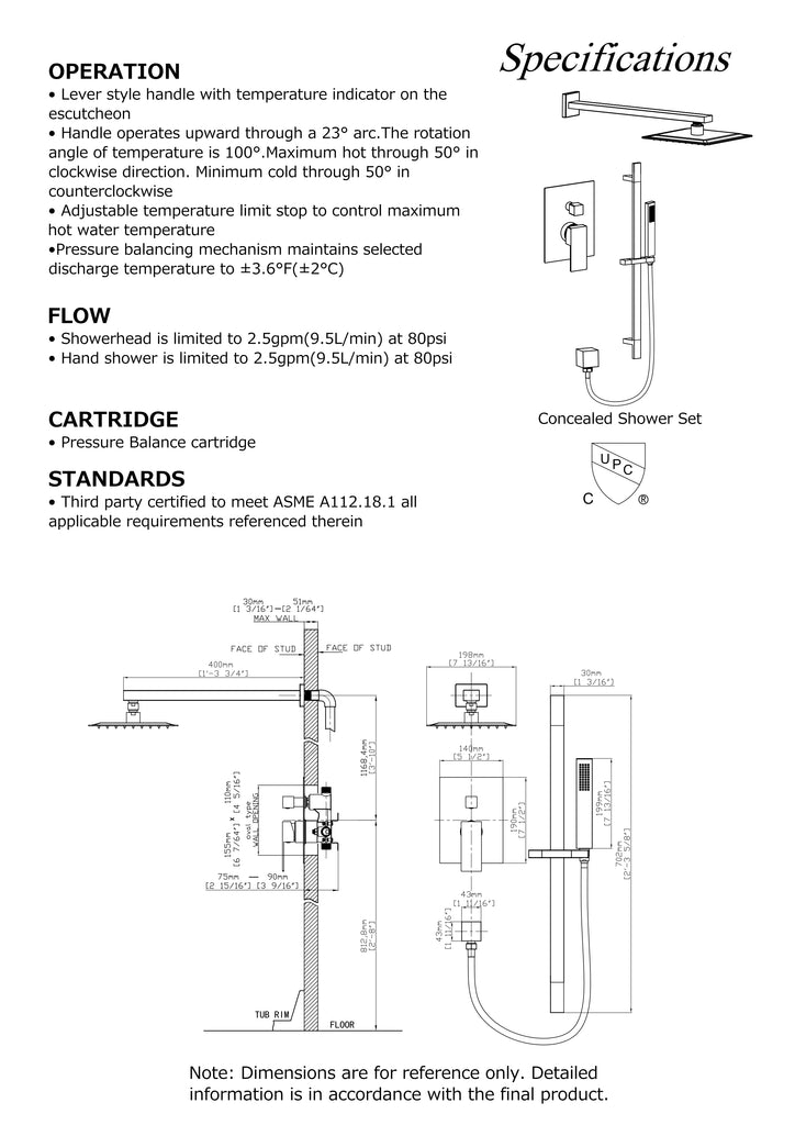• 8"X8" Stainless Steel Shower Head