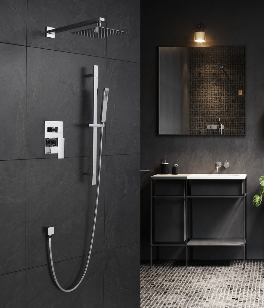 Chrome 8 Inches Square Two Function Shower Set